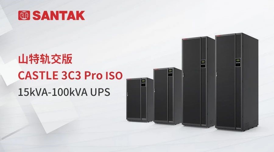 近日,山特重磅发布了全新轨交版 CASTLE 3C3 Pro ISO 15kVA-100kVA UPS 产品。这是山特针对轨道交通、工业自动控制系统、交通系统等应用环境全面升级的新产品,占地空间小、部署速度快,能够在复杂恶劣的运行环境下,为轨交行业控制中心和各子系统关键负载提供安全、可靠、稳定、绿色的电力保障。