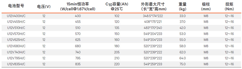 维谛H系列阀控式铅酸蓄电池产品规格及主要参数