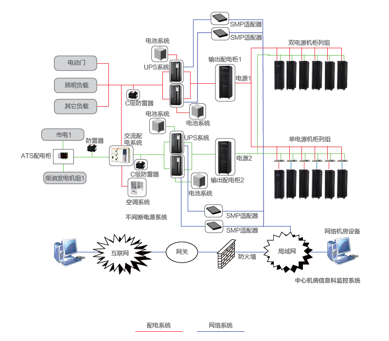 ● 系统组成:针对IT信息机房我司可提供除了高端UPS电源外,同时也能够为IT机房提供机房基础建设、配电、机柜、空调等电力基础设备;